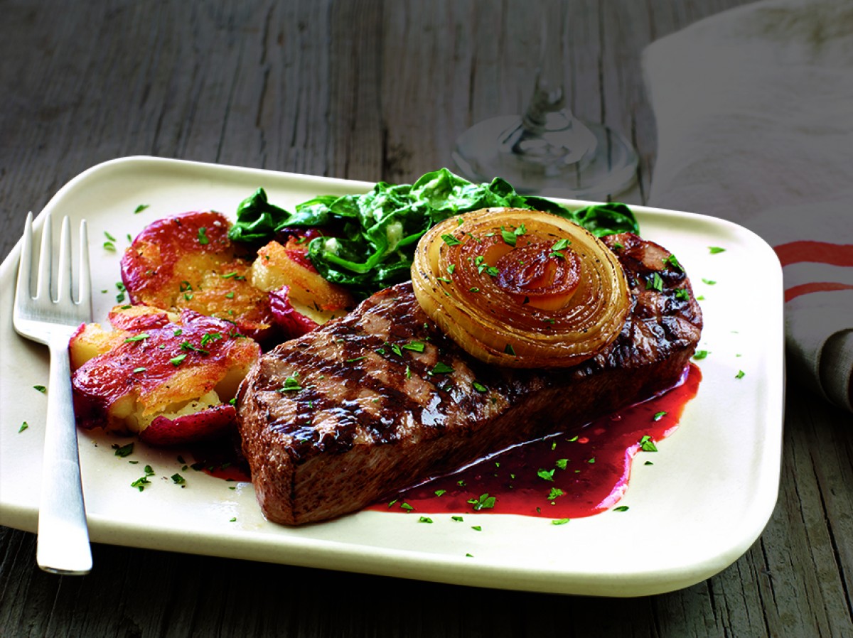 SIRLOIN A LA PARRILLA CON CEBOLLA CARAMELIZADA